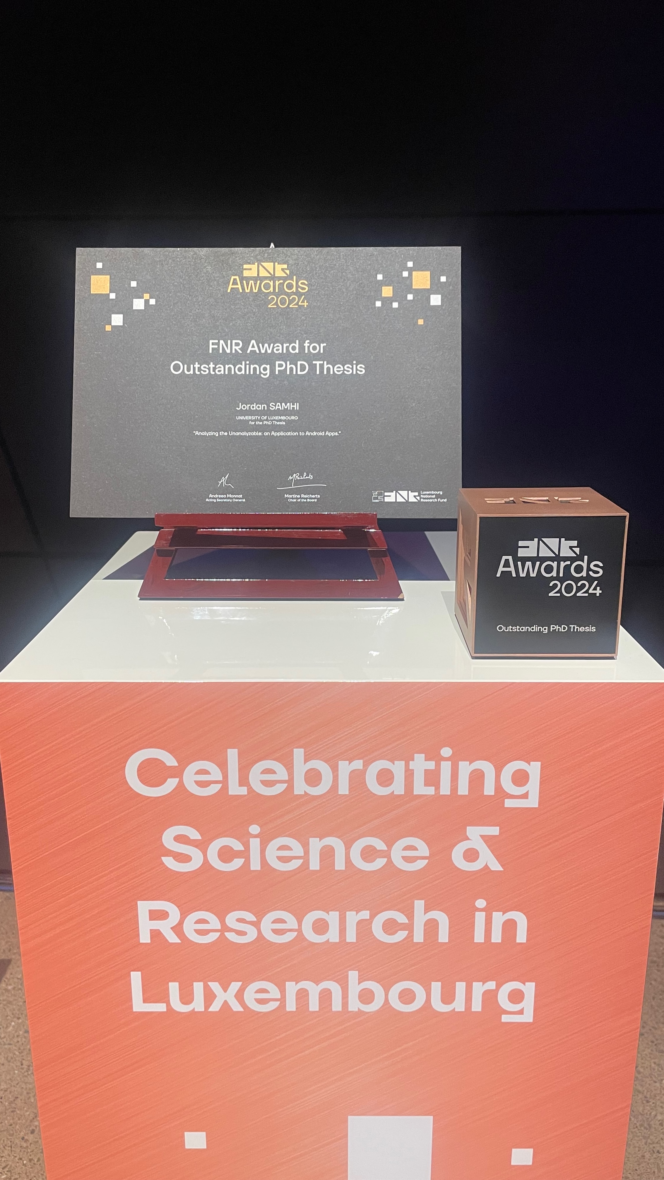 Jordan Samhi Outstanding Thesis Award FNR 2024 trophee