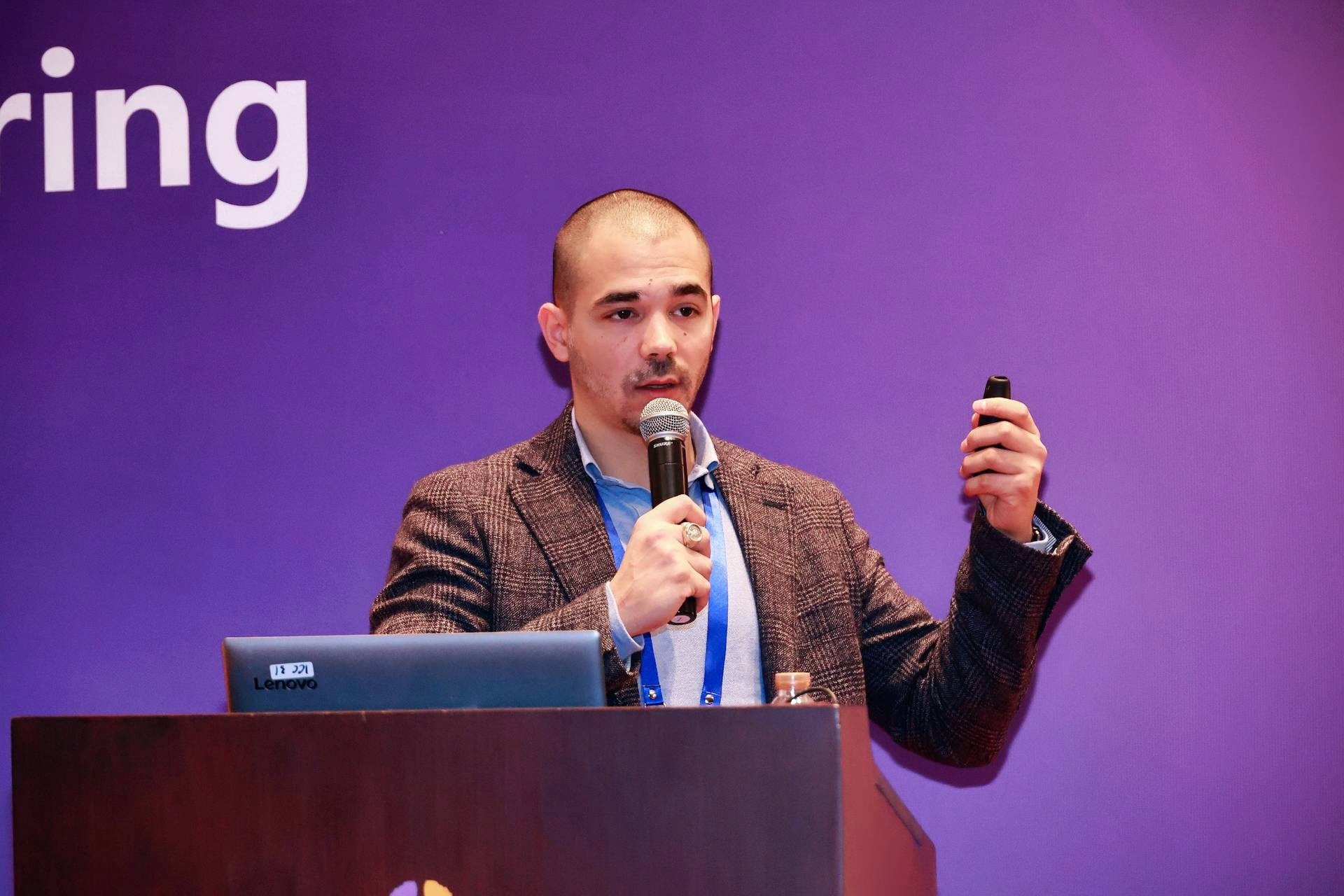 Jordan Samhi giving a talk Macau 2023