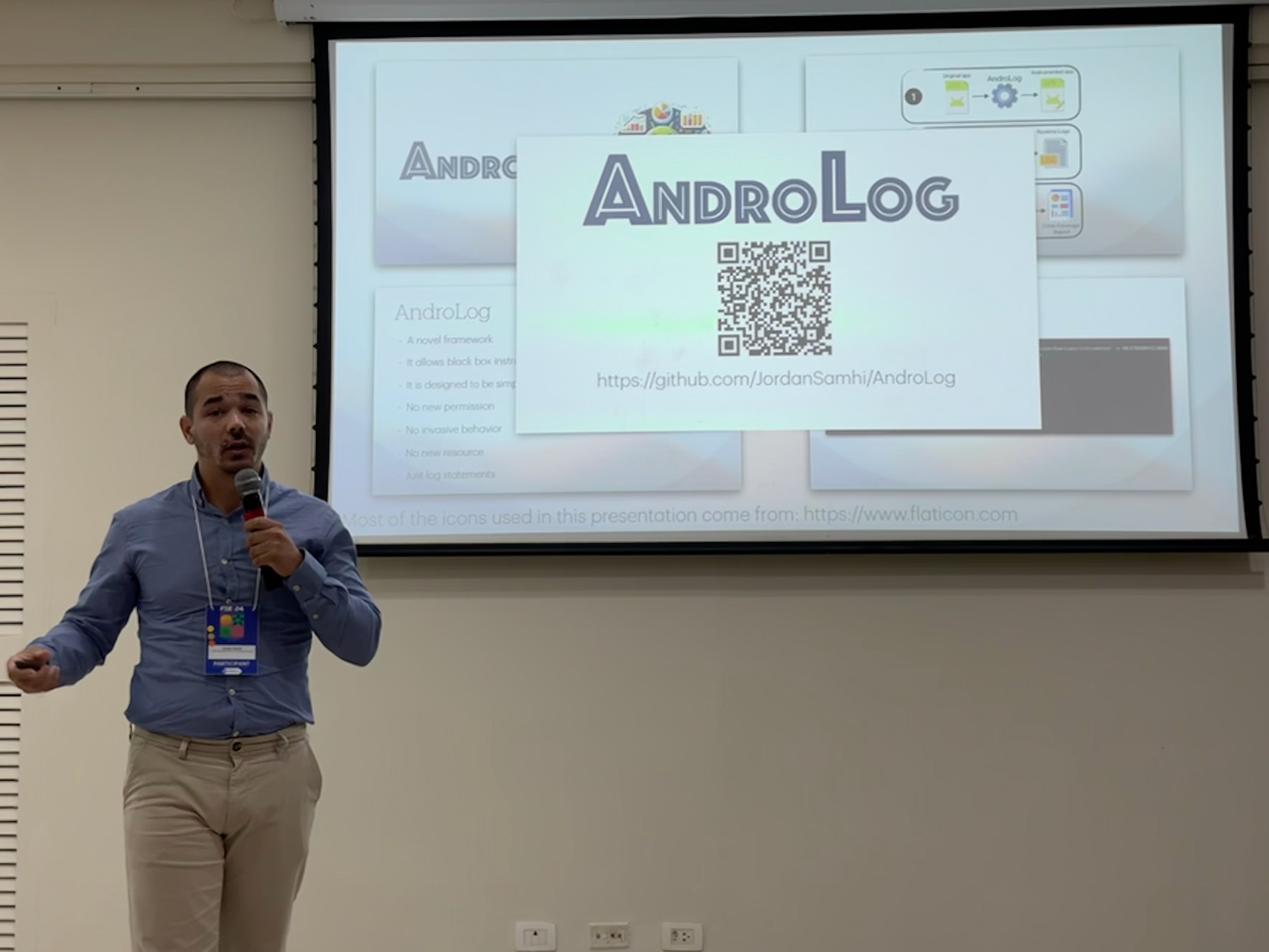 Jordan Samhi presenting a paper at FSE 2024